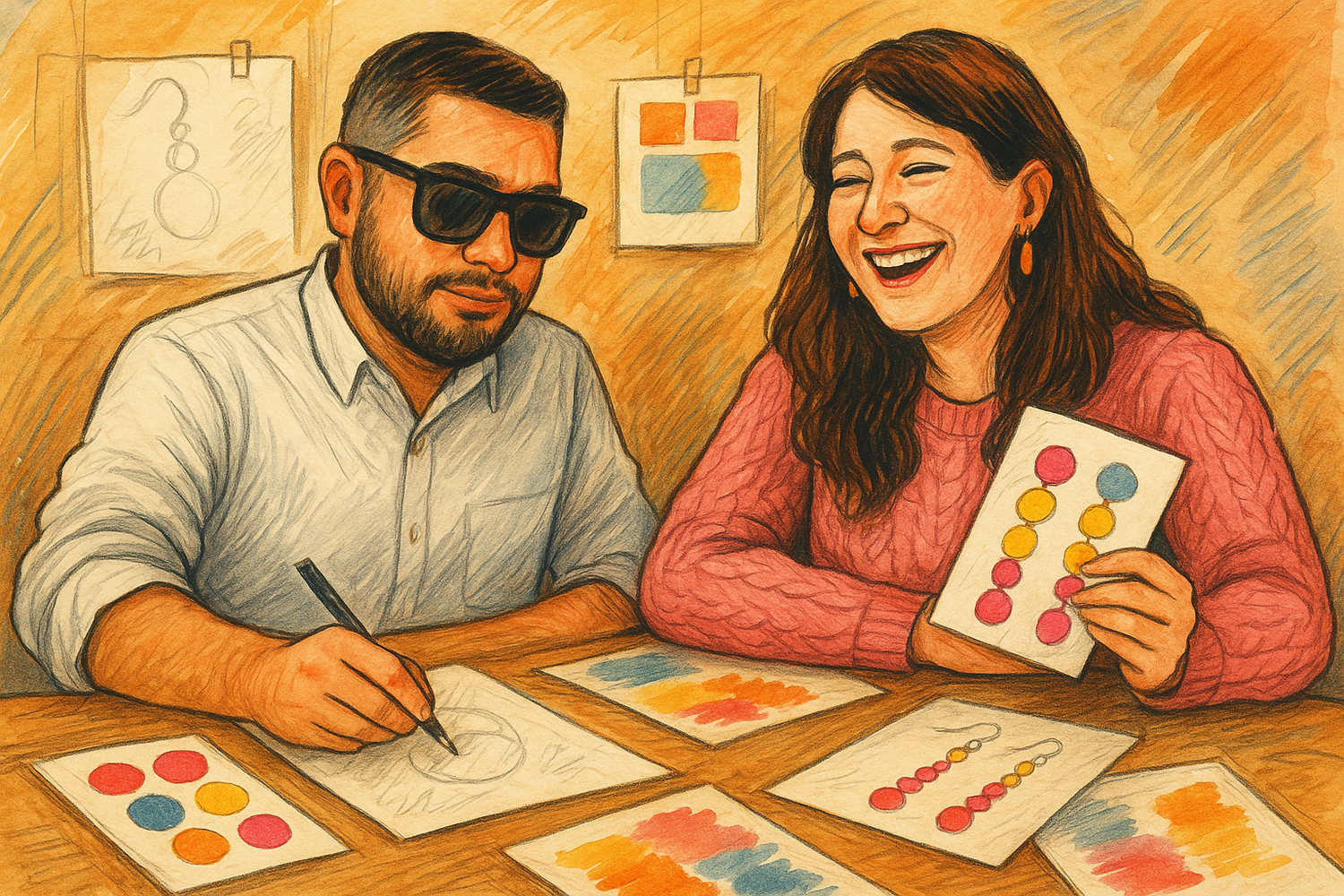 Mauricio aporta el espíritu emprendedor y muchas ideas sobre estética y equilibrio, mientras que Maibel es el alma creativa que da vida a los colores, texturas y detalles que hacen única a cada pieza.